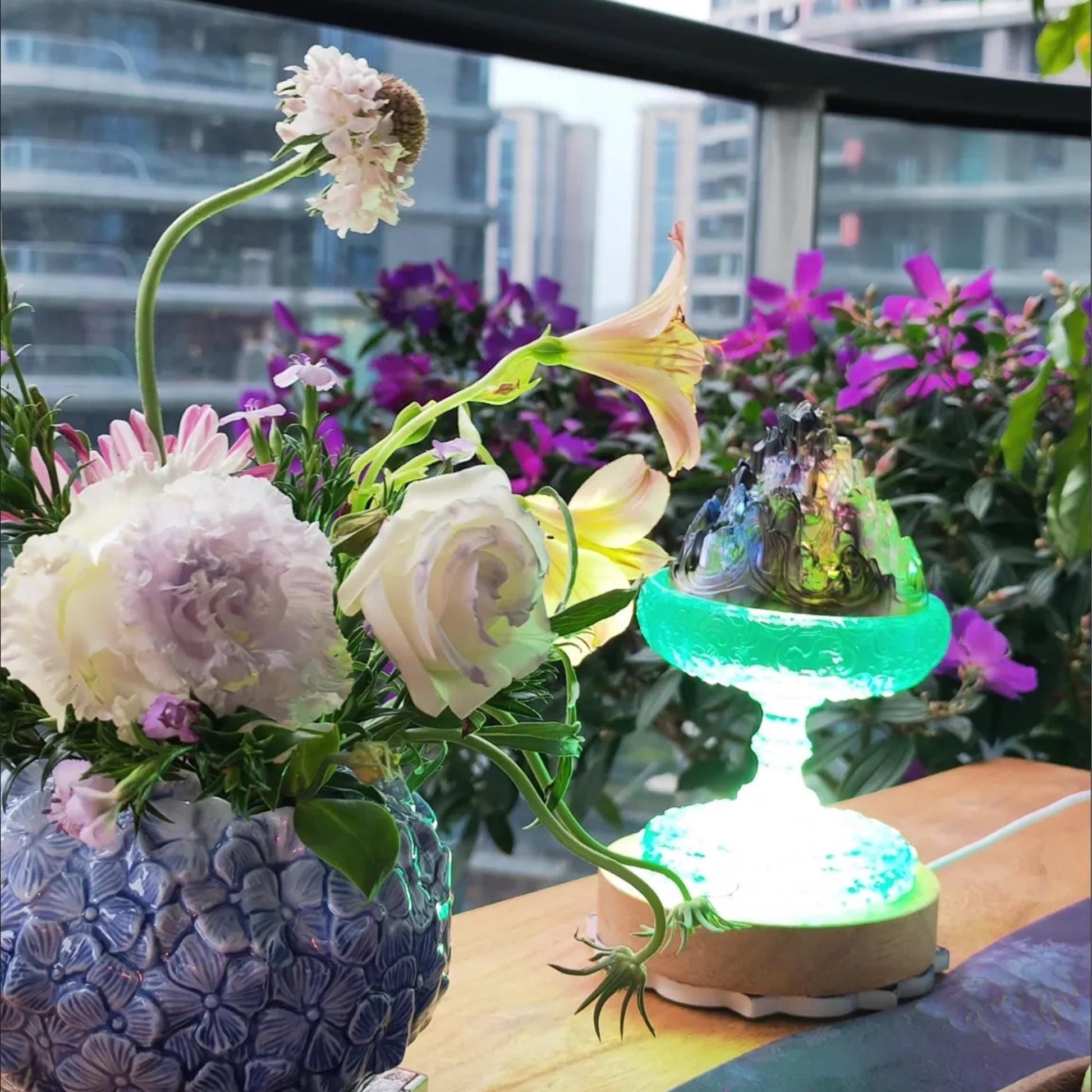 Chinese Colored Glaze Mountain Incense Burner with LED Light
