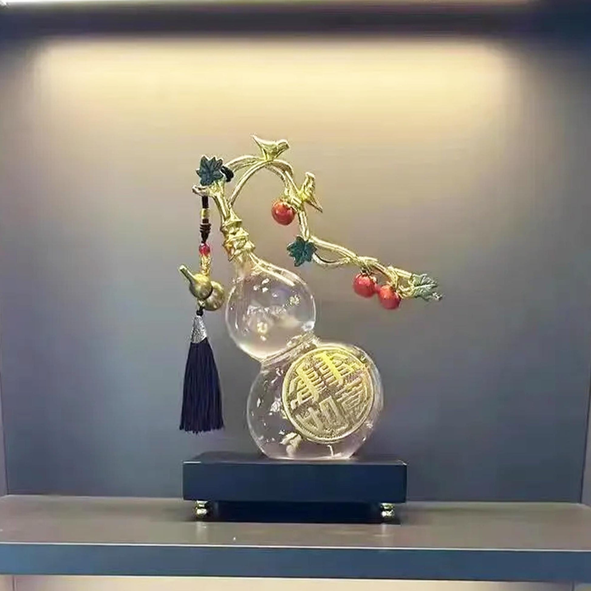 Auspicious Centerpiece: The translucent, glittering crystallike gourd features golden engraving of "Wan Shi Ru Yi" (a classic phrase meaning "may all your wishes come true") β every detail is designed to invite positivity.