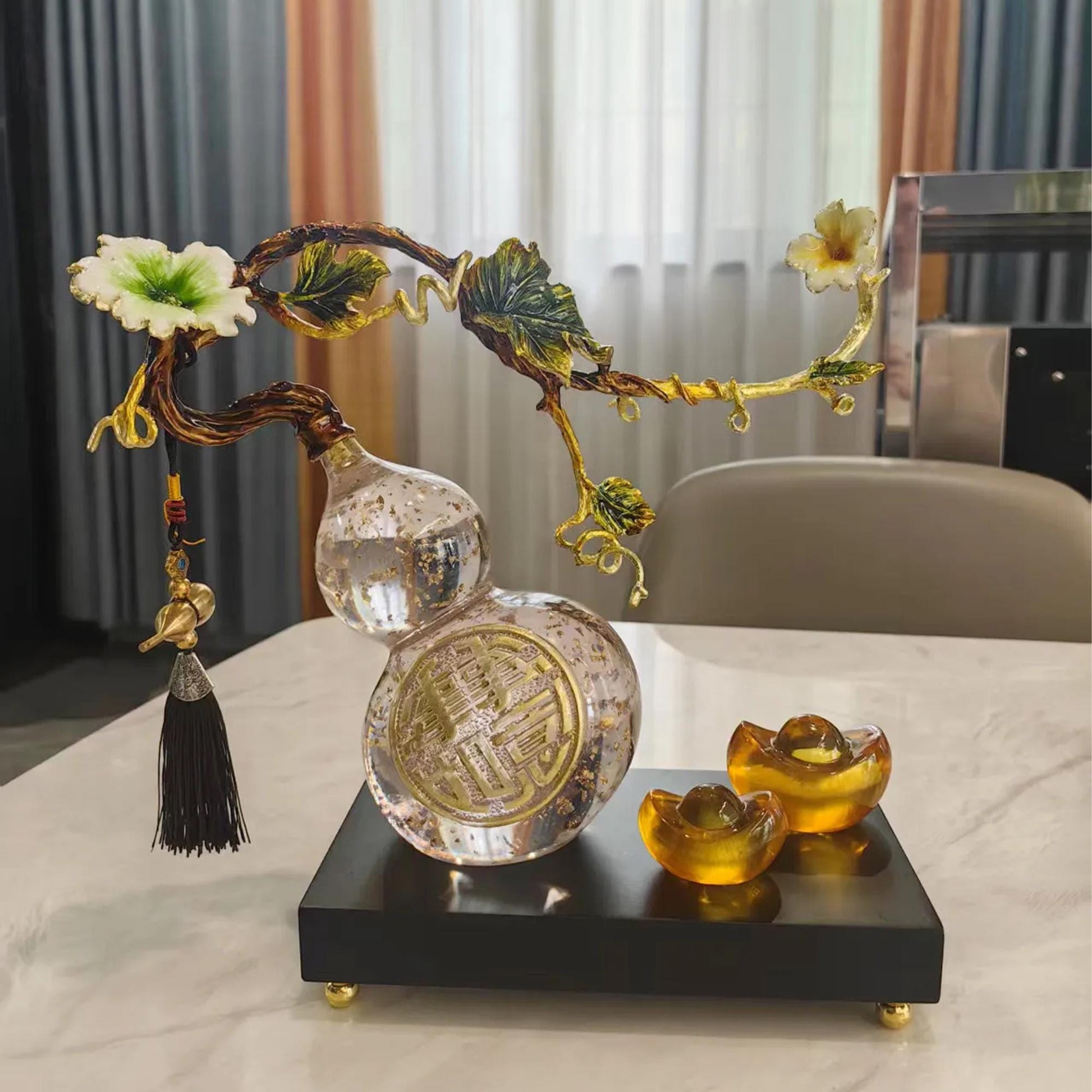 Chinese Crystal Gourd Ornament | Good Luck Home Decor, Lucky Fortune Statue o, Prosperity Gift for Living Room Decor