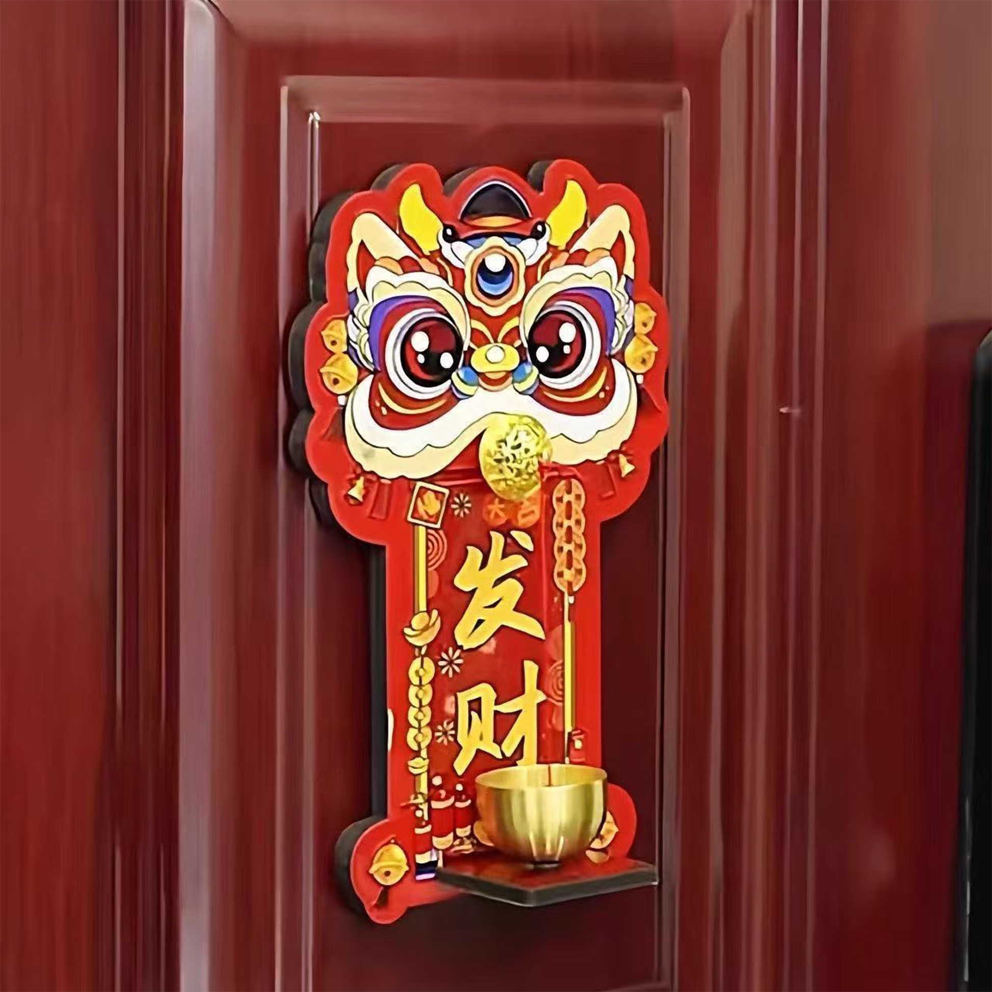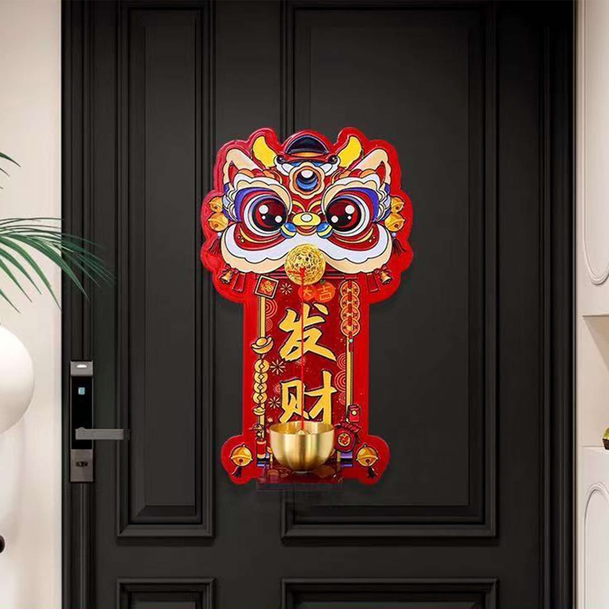 Inspired by the iconic lion dance (a symbol of good luck and prosperity in Chinese culture), this doorbell features bold red tones, vivid lion details, and lucky motifs like "fortune" (发财) and golden accents. It’s not just a functional doorbell: the eye-catching, 3D design doubles as a cheerful wall decor piece for your entryway, front door, or hallway.