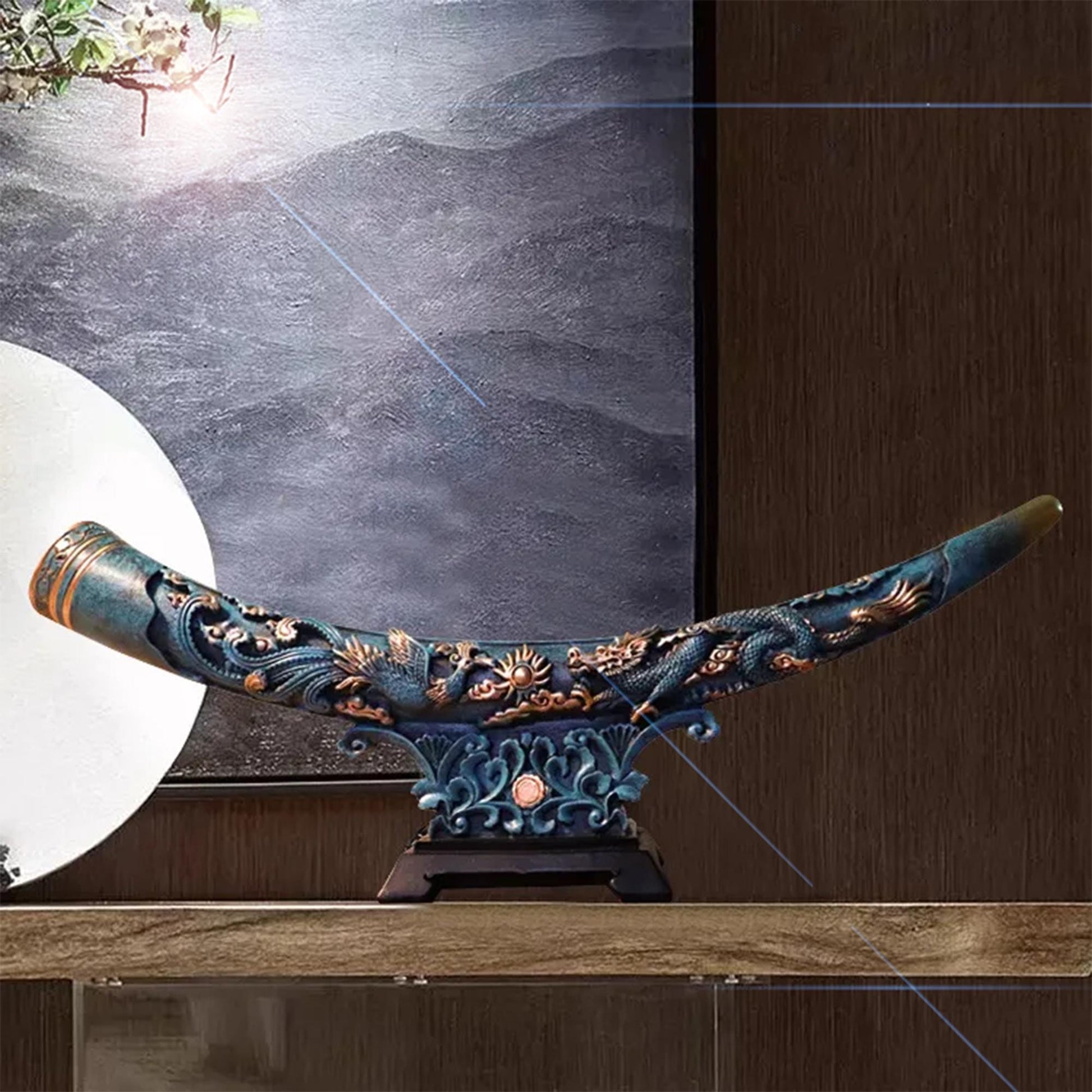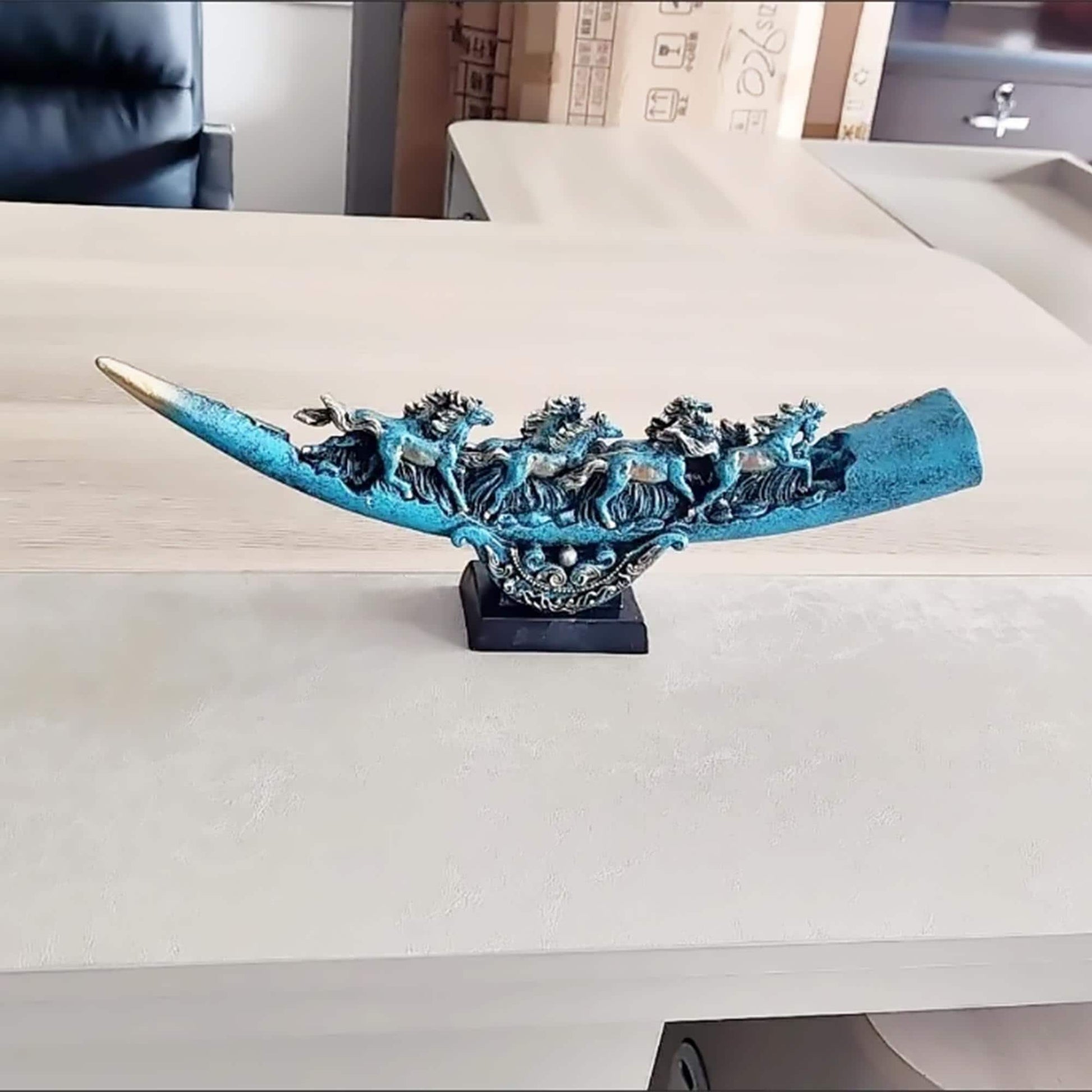 Crafted to mimic the warm luster of real ivory, this faux ivory figurine blends traditional Chinese art with timeless elegance. Featuring iconic motifs—auspicious dragon & phoenix (symbolizing harmony) and eight galloping horses (representing success)—it’s a meaningful nod to Eastern culture.