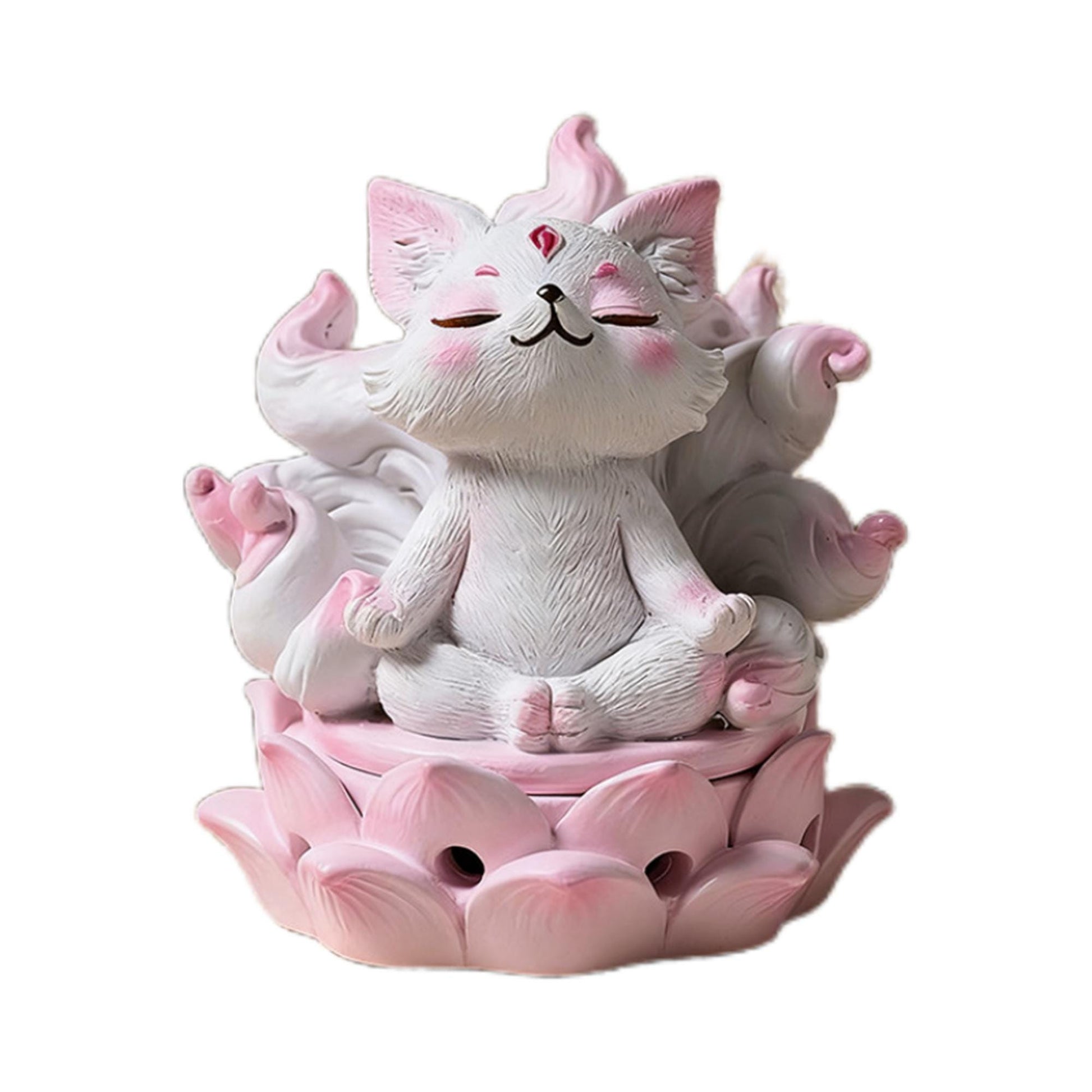 Cute Kitsune Incense Burner Meditating NineTailed Fox Statue, Spiritual Home Decor, Chinese Fox Figurine for Altar & Meditation Space