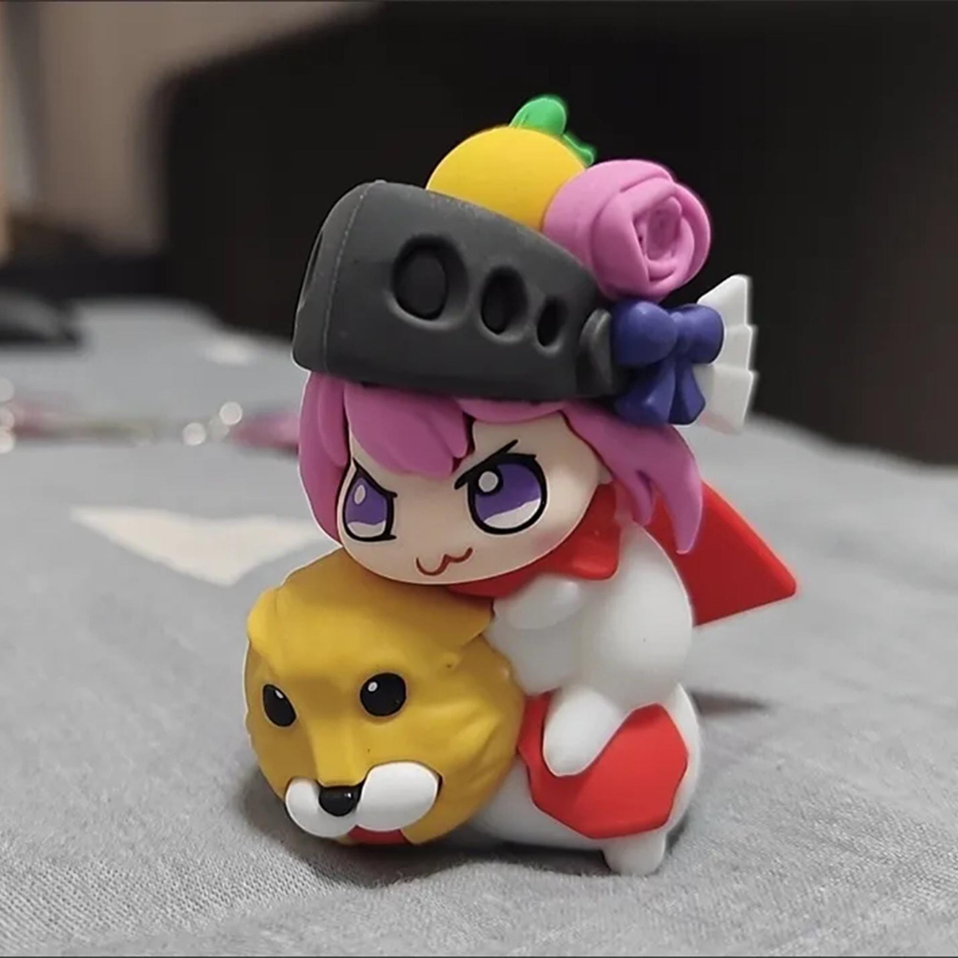 Unique Handmade Soft Clay Chibi Figurine - Cute Unicorn-Horned Character with Lion Pal & Fruit Accent | Mini Desk/Car Decorative Sculpture